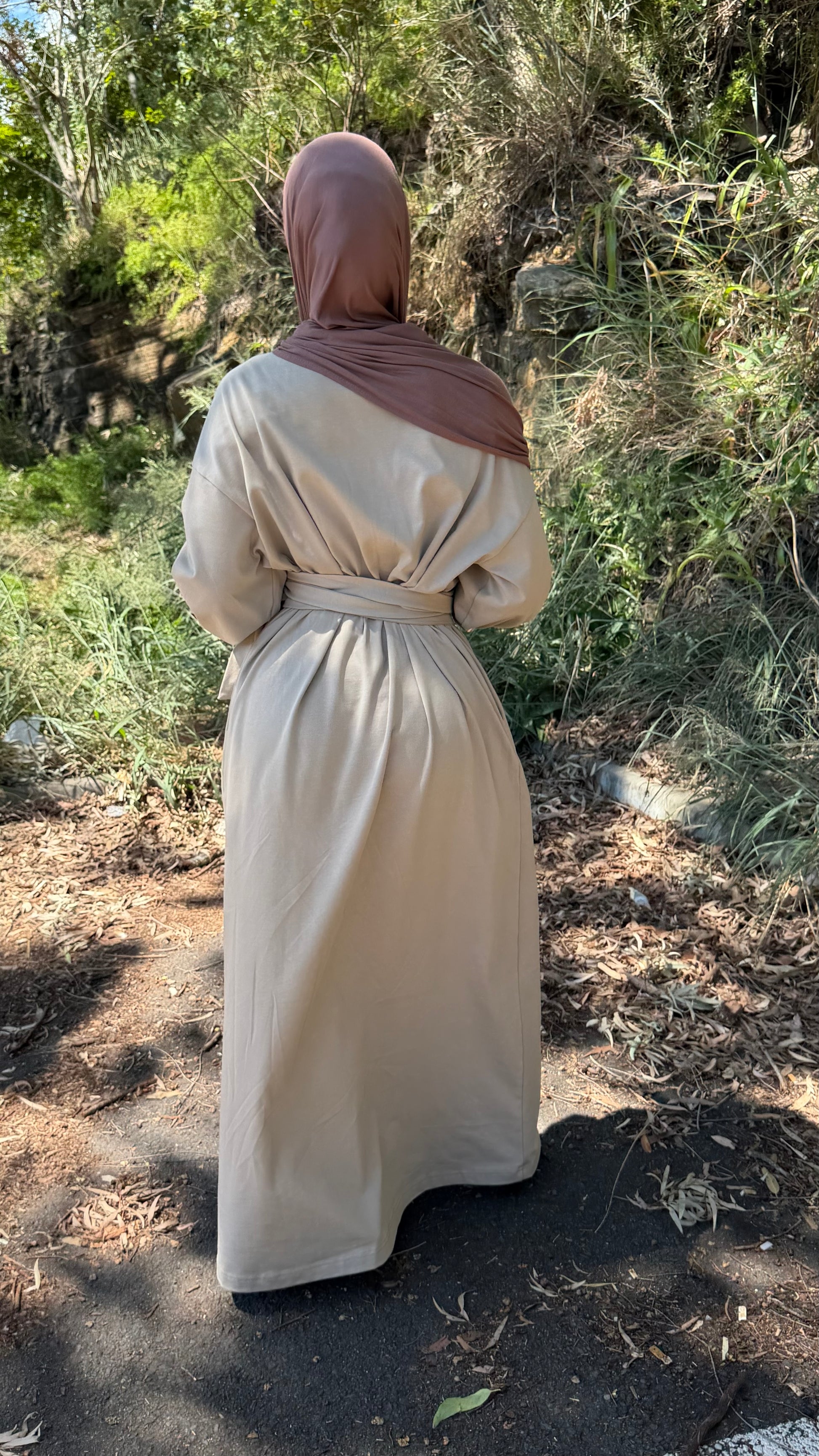 Crafted from 100% breathable cotton, the Utility Dress is designed for comfort, practicality, and effortless everyday wear. Featuring a relaxed, modest silhouette with wide sleeves, it offers ease of movement while maintaining a clean and refined look.